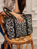 Canvas: black batik Leaves
